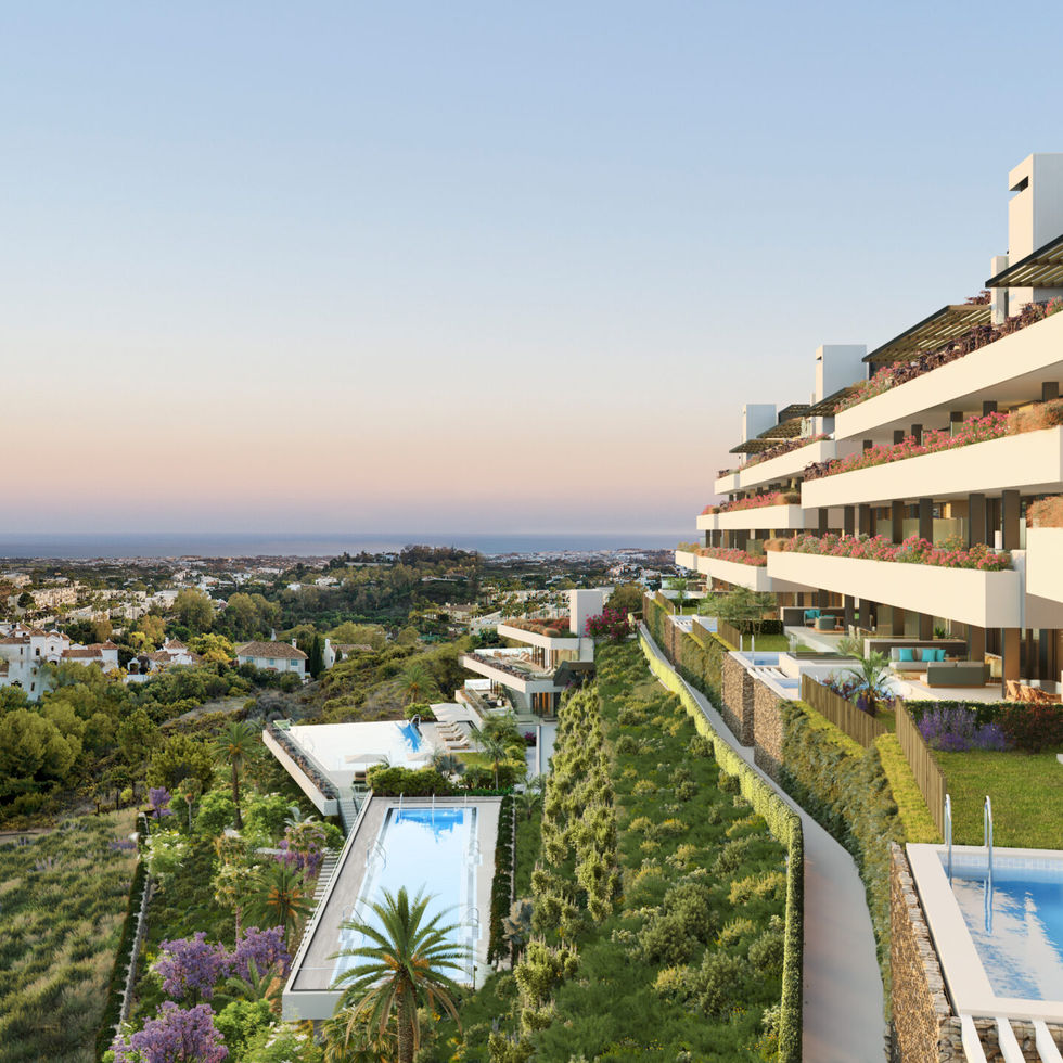 The Tiara project owes its name to the way the properties lie harmoniously on the hills of Benahavis, looking over the Mediterranean Sea, in the same way as a spectacular balcony looks onto the sea, offering impressive views of the entire coastline and Marbella Bay, all the way to the Rock of Gibraltar with Africa in the background.