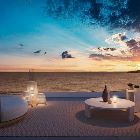 Outside is every bit as captivating. Landscaped gardens invite barefoot strolls, private pools reflect the endless blue of the sky, and an optional jacuzzi on the solarium creates the perfect spot for total relaxation, with the soft murmur of the sea in the background. At WaveView, nature isn’t just a backdrop; it’s part of the home.